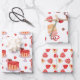 Cute Valentine Cake & Red Heart Cookies Wrapping Paper Sheets
