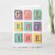 This Galentine’s Day card features a 3x3 grid of nine pastel blocks centered on a white background. Together, the blocks spell out “GALENTINE,” with each letter standing out clearly. Every square is a soft shade like lavender, yellow, pink, or mint green. The letters appear raised with a glossy look, and small shadows give them a textured feel. Some letters shine in gold, while others match the pastel tones around them. Tiny white dot details line the edges of each block, with a few matching color dots mixed in for extra detail. Near the bottom of the card, a row of small round circles repeats the same pastel colors. The overall design feels warm and cheerful, making this card a sweet way to celebrate friendship and share affection on Galentine’s Day.