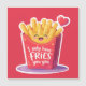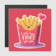 A cute and colorful cartoon illustration of a red French fries carton with a happy kawaii smiling face. The design features a floating red heart and the romantic funny pun quote "I only have FRIES for you". The image has a white sticker border, making it perfect for Valentine's Day greeting cards, fast food lovers, and humorous romantic gifts. Isolated design.