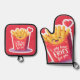 Cute Valentine French Fries Pun Oven Mitt & Pot Holder Set
