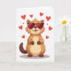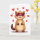 This Valentine's Day card features a cute, chubby groundhog-like character standing front and center on a plain white background. Its fur is caramel brown with creamy beige on the face and belly, and it has soft pink blush on its cheeks. The character wears heart-shaped sunglasses with dark red lenses, and several small red hearts float around its head like a little cloud of love. It sticks its tongue out slightly, giving it a funny, flirty expression that feels friendly and sweet 😘. There isn’t any text printed on the card, so the picture does all the talking. The simple layout keeps your focus on the character and the hearts, making the whole scene feel warm and romantic ❤️💕. Hope it helps you share a little love and affection with someone special this Valentine’s Day.