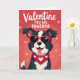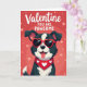 This Valentine's Day card features a happy black-and-white cartoon dog front and center, looking right at you with a big, friendly smile. The dog wears bright red heart-shaped sunglasses with dark lenses, and its tongue sticks out a little in a silly, sweet way. Around its neck is a red bandana covered in small white hearts, tied neatly to fit the love theme. The background is a deep red gradient that gets lighter toward the middle, with faint heart shapes and tiny light dots sprinkled around. Near the top, the message reads “Valentine YOU ARE PAWSOME” in white block-style letters, easy to spot against the red. The words “Valentine” and “YOU ARE PAWSOME” sit together near the upper area, giving the card a clear, upbeat message of affection. It feels like a fun way to say you care, with a little extra charm for dog lovers ❤️💌🍫. Share it with someone special to pass along warm Valentine’s Day.