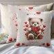 Cute Valentine's Bear with Red Roses and Hearts Throw Pillow