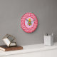 This awesome clock features a cute little Valentines Bee. The Bee has a furry yellow body with black stripes and red antennae. It is holding on to a red heart shaped piece of honeycomb and is surrounded with sunflowers. Each flower has red petals to match the romantic bee and a black centre. There is white text in the middle of the honeycomb that says the romantic message "Bee mine". This little bee is ideal for showing your love for someone special.