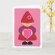 Gnome with heart. This modern illustration with a touch of whimsy is sure to bring a smile. Solid, saturated, hand painted look - beautiful on the uncoated, eggshell stock. Red, pink, purple, white, black. Inside: Happy Valentine's Day