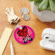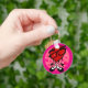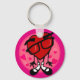 Funny graphic cartoon style red heart illustration round basic button keychain. Background color can be customized.