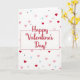 This Valentine's Day card features the words “Happy Valentine’s Day!” in flowing red lettering right in the center. The message sits inside a thin red rectangle that frames it neatly against a white background. Around the border area, small hearts are scattered like confetti in red, blush pink, and light sky blue. A few tiny black dots are mixed in between the hearts, adding a bit of contrast and texture. The overall look feels light, sweet, and easy to read, with the greeting clearly taking the spotlight. It’s a simple way to say you care, whether you’re giving it to a partner, a close friend, or someone you’re thinking of ❤️. The mix of soft colors and the centered message makes it feel sincere without trying too hard 🥰.