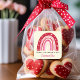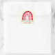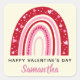 Cute Valentines sticker features rainbow in red and pink decorated in hearts on yellow sticker. Perfect for your child's school Valentines or favor seal.