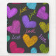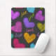 Cute Vibrant Scribbled Hearts with Love Script Mouse Pad