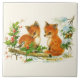 Cute Vintage Foxes Retro Christmas Scene Ceramic Tile