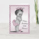 Girls' elegant pink vintage princess 1st birthday card with a beautiful vintage illustration of a cute and adorable baby girl with stylish pink Princess crown, sweet bunny rabbit slippers, pink diaper with ruffles and a pink bow in her hair on a pretty pink gradient background with a classy black polka dots border. Chic, trendy, glamorous, girly, fun, fashionable affordable custom girl First birthday celebration card for your little Princess. Decorated on both sides. If you need any assistance customizing your product please contact me through my store and I will be happy to help.