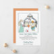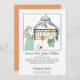 This cute whimsical watercolor nursery scene with pregnant mom and stuffed toys includes a cute rhyming text as follows: your names then "are expecting a son. Mom has been gathering things one by one. The toys are waiting to be played with soon, and dad is really over the moon". Peach accent colors on white, with a cute handwritten script style, contrasted with a classic sans serif text type.
