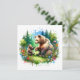A mommy bear playing with her baby cub bear outside in a field of grass and flowers with a pine tree background. Watercolor style ai art.