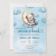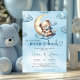 Cute watercolor blue and gold sleeping teddy bear invitation