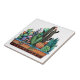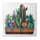 Cute Watercolor Cactus Garden In Pot Ceramic Tile