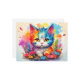 cute cat in rainbow colors with flowers in the style of a watercolor image.