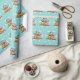 Cute Watercolor Christmas Owls and Snowflakes Teal Wrapping Paper