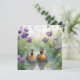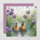 Cute watercolor duck n wildflowers blank greeting card. Beautiful wildlife design. Plum back version.