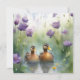 Cute Watercolor Duck N Wildflowers Blank Card