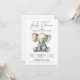 Plain white envelopes are included with paper invitations and will come to fit the invitation size you select. If you don’t need the envelopes, you may choose to not receive them by selecting the dropdown below "Envelopes" and choosing "None." If you’d like to have a design on your envelopes, you can browse all of these available envelopes to find the design that complements your Cute Watercolor Elephant Baby Shower Invitation.