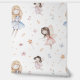Introducing the **Cute Watercolor Fairy Flowers Fairytale Nursery Wallpaper**—a magical and whimsical addition to any child's room. This elegant wallpaper features charming pastel watercolor illustrations of fairy flowers, magic wands, stars, butterflies, and ballerinas, creating a delightful fairytale fantasy theme. Perfect for a pink girl's nursery, it combines playful elements with an elegant, minimalist, and trendy modern design.