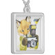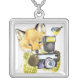 Cute Watercolor Fox Taking Pictures Silver Plated Necklace