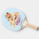 Ping pong paddlewith a cute watercolor painting of a mother lion holding her baby cub. A pretty purple floral bouquet below them, adds a gentle touch to this sweet and adorable image. Light blue background.