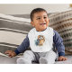 First of all, the shipping was fast. This bib was everything I had hoped for. It has such a smooth feel to it and is machine washable. The colors are vivid and the image quality is just as pictured on the web. Will be happy to give this as a New Baby gift !
