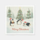 Add festive joy to your holiday table with these adorable watercolor Christmas napkins featuring playful penguins in Santa hats surrounded by snowy Christmas trees and the text Merry Christmas that you can personalize. The whimsical boho watercolor style brings cozy winter vibes and cheerful holiday spirit to every celebration. Perfect for Christmas dinners, parties, and family gatherings. Part of a collection with matching cards, wrapping paper, party supplies, gifts, and decor.
