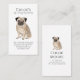 An artistic business card for a pet sitter and dog walker featuring a cute artistic watercolor sitting dog and loving text describing your interaction with dogs, from throwing balls to scratches and love! Simple minimal style with a creamy linen effect background. This card features a cute little pug.