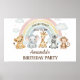 Cute Watercolor Safari Animals Birthday Poster
