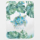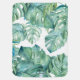 Tropical gender neutral newborn baby blanket with cute watercolor sea turtle and monstera palm leaves in shades of turquoise blues and greens. Personalize with your baby's name for a Hawaiian themed nursery or baby shower gift. To see more tropical keepsake under the sea animals nursery blankets by Victoria Rigali Designs visit Do Tell A Belle at www.zazzole.com/dotellabelle