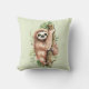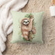 Cute Watercolor Sloth & Tropical Leaves Throw Pillow