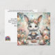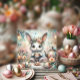 Cute Watercolor Tea Garden Easter Bunny Holiday Card