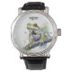 This watch features a charming watercolor painting of a tree frog. The design showcases the frog perched thoughtfully on a branch, brought to life with soft washes of green, brown, and hints of yellow and blue. The loose, free-flowing style of watercolor gives the art a fresh, natural, and whimsical feel, making it a perfect accessory for nature lovers, artists, or anyone who appreciates unique and playful designs. Want to make it uniquely yours? Add your own words for a truly special touch. You can use phrases like "My spirit animal" or "Leap of Faith" to show your love for nature, or add a simple, personal touch with text like "On the go" or your initials. For a more playful vibe, a fun phrase like "Feelin' kinda froggy" can be the perfect final detail.