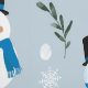 A cute watercolor winter snow pattern design featuring cute snowman, pine tree and botanical foliage. An ideal design for anyone who loves Winter, cute watercolor illustrations and pattern designs. Perfect for the Winter season, Festive Season and Christmas.