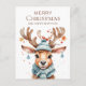Embrace the wonder of Christmas with our charming watercolor woodland reindeer holiday postcard, showcasing a lovable illustration of a cute reindeer in a blue hat and scarf with ornated antler on a simple white background. Customize the text to add your own heartfelt sentiments.