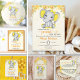 A charming design for your baby shower! Our design features a beautiful hand-painted watercolor elephant in yellow, with pretty orange and black font and the phrase "A Sweet Peanut is on the Way." Perfect for welcoming that sweet baby girl! Personalize your baby shower design by adding your event details.