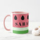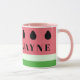 A bold pink and green mug inspired by the colors of a watermelon. Just add your name!