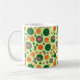 This cute mug features a colorful fruit pattern made of watermelon and orange slices on a light green background.