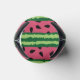 Can cooler with a cute watermelon pattern. Green rind in layers of stripes along with a layer of pink stripes with black seeds inside.