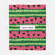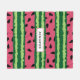 Blanket with a cute watermelon pattern. Green rind in layers of stripes along with a layer of pink stripes with black seeds inside.