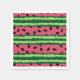 Paper napkins with a cute watermelon pattern. Green rind in layers of stripes along with a layer of pink stripes with black seeds inside.