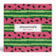 Personalized recipe binder with a cute watermelon pattern. Green rind in layers of stripes along with a layer of pink stripes with black seeds inside.