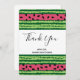 Flat thank You card with a cute watermelon pattern. Green rind in layers of stripes along with a layer of pink stripes with black seeds inside. Fun and summery design.