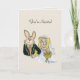 Get married and live hoppily ever after... Here is a cute cartoon rabbits wedding invitation card. there are three sides to edit and personalize to create your custom invitation. Just replace the text in the boxes.
