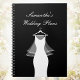 Stylish wedding planner spiral notebook or journal with wedding gown design. Cute personalized black and white organizer for engaged couple getting married / future bride and groom planning their marriage party. Elegant script typography with wedding dress and veil on a hanger illustration. Make your own handy little diary book for your to do list, budget, ideas, costs, notes, plans, dreams etc. Can also be used as guest book at wedding venue. Just change the wording.