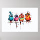 Cute Weird Birds sitting on a Branch poster, Cute Birds poster, Birds lovers, Birds wall art, Birds wall print, Birds painting, colorful Birds, Little Bird Art, Apartment Wall Art