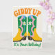 Cute Western Cowgirl Boots Retro Floral Birthday Card