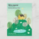 Cute and adorable illustration of a country yellow house on the top of the hill with lots of green grass, trees and a nearby lake with swans, surrounded by grassing sheep. The back of postcard features your customizable message for your family and friends, in charcoal typography.